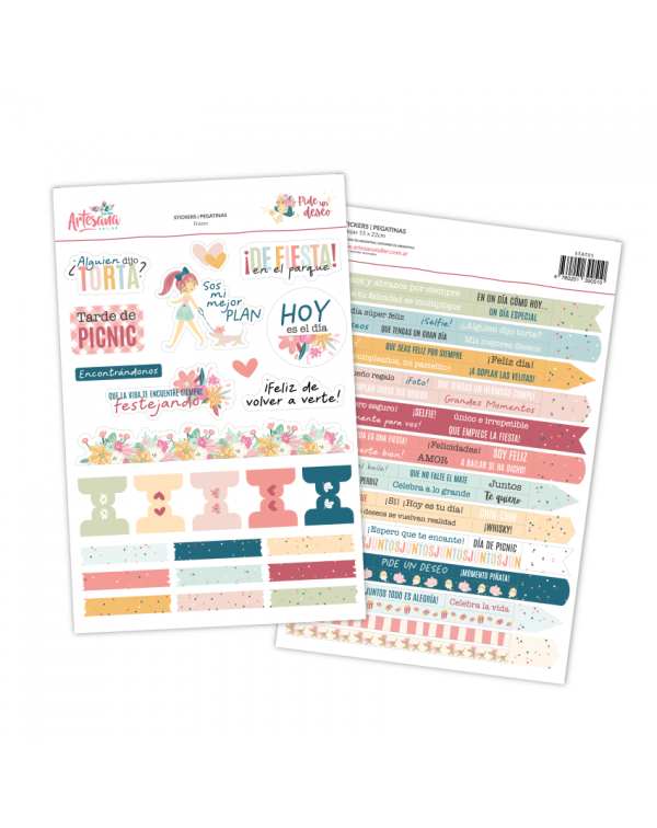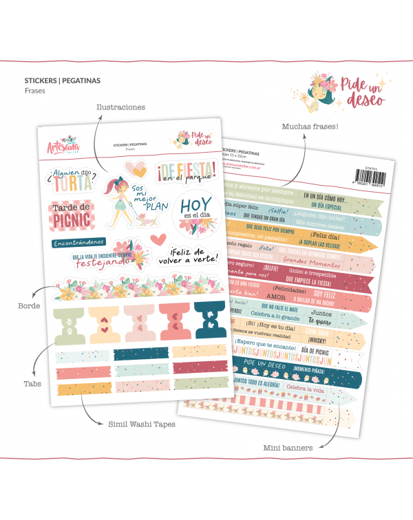 Incluye diseños ilustrados, frases, similares washi, banderines y pestañas