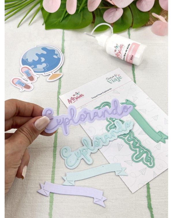 TROQUEL FRASE EXPLORANDO DIARIO DE VIAJE ARTESANA TALLER