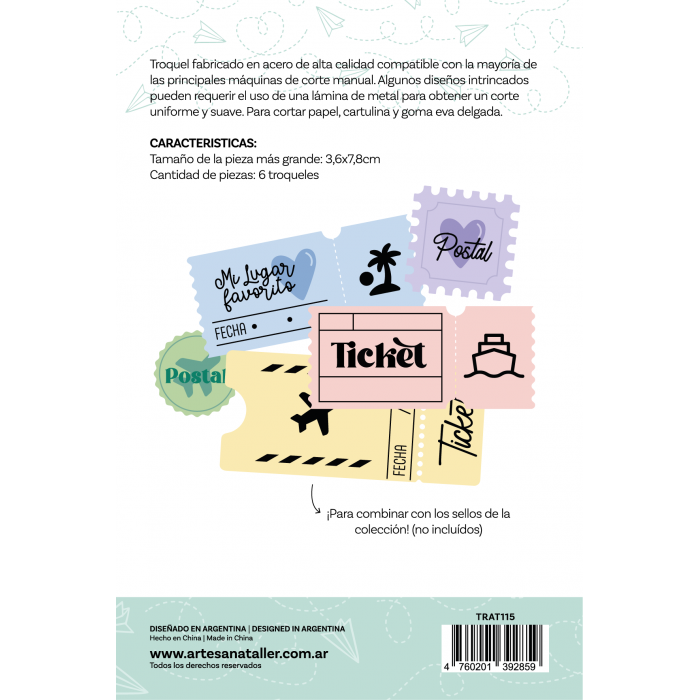 TROQUEL TICKETS Y ESTAMPILLAS DIARIO DE VIAJE ARTESANA TALLER